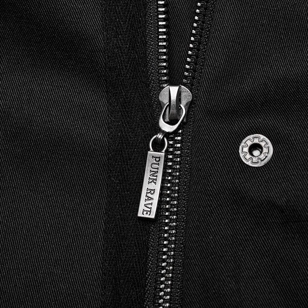 With a fitted silhouette and slightly elastic fabric, this coat offers a comfortable and flattering fit, allowing you to move with ease while showcasing your individual style. Pair it with dark-toned clothing, combat boots, and metal accessories for a complete gothic punk ensemble that commands attention.