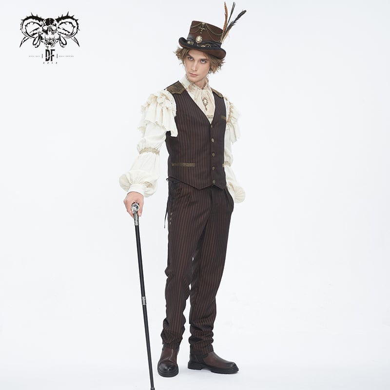 Men's Gothic Striped Faux Leather Splice Coffee Vest