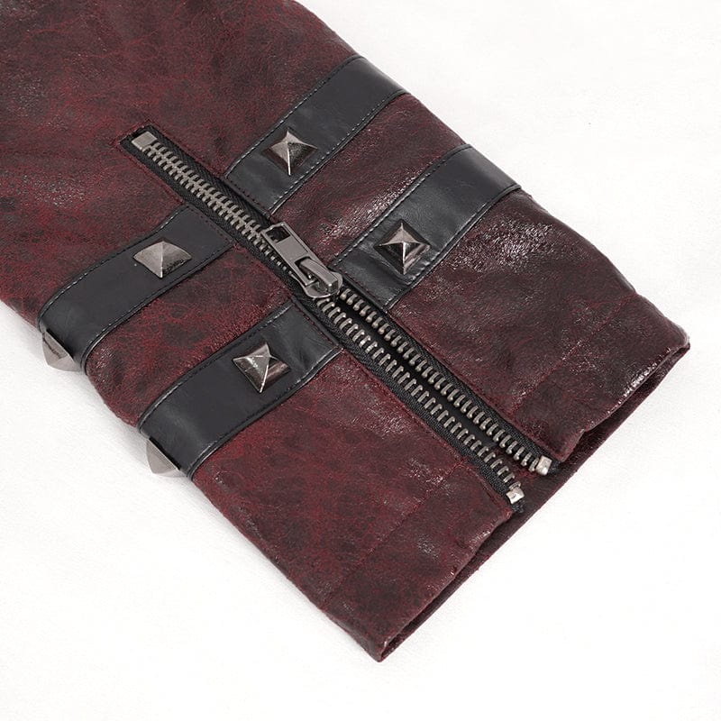 Men's Punk Stand Collar Multi-buckle Faux Leather Coat Red