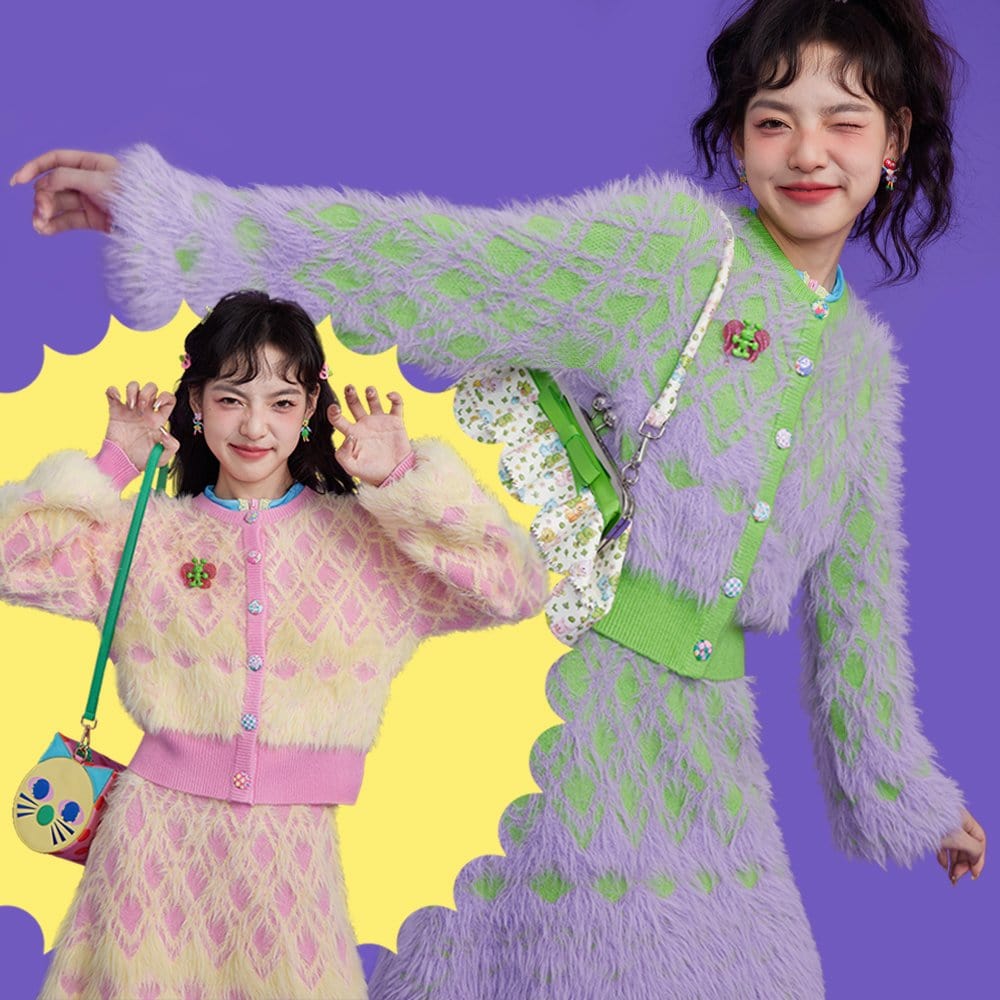 Women's Fluffy Diamond Knitted Candigan with Skirt