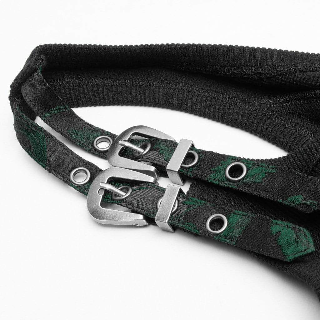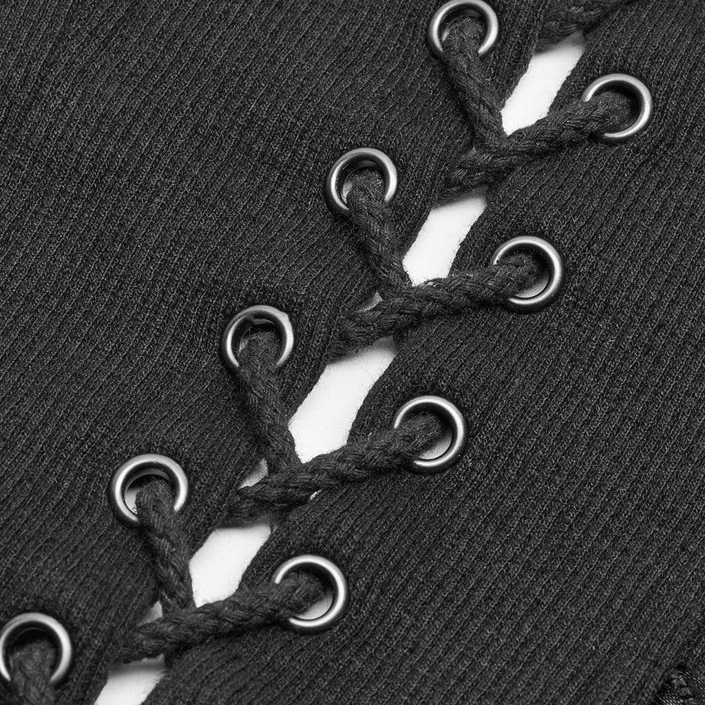 Women's Goth Front Zipper Lacing Jacquard Vest