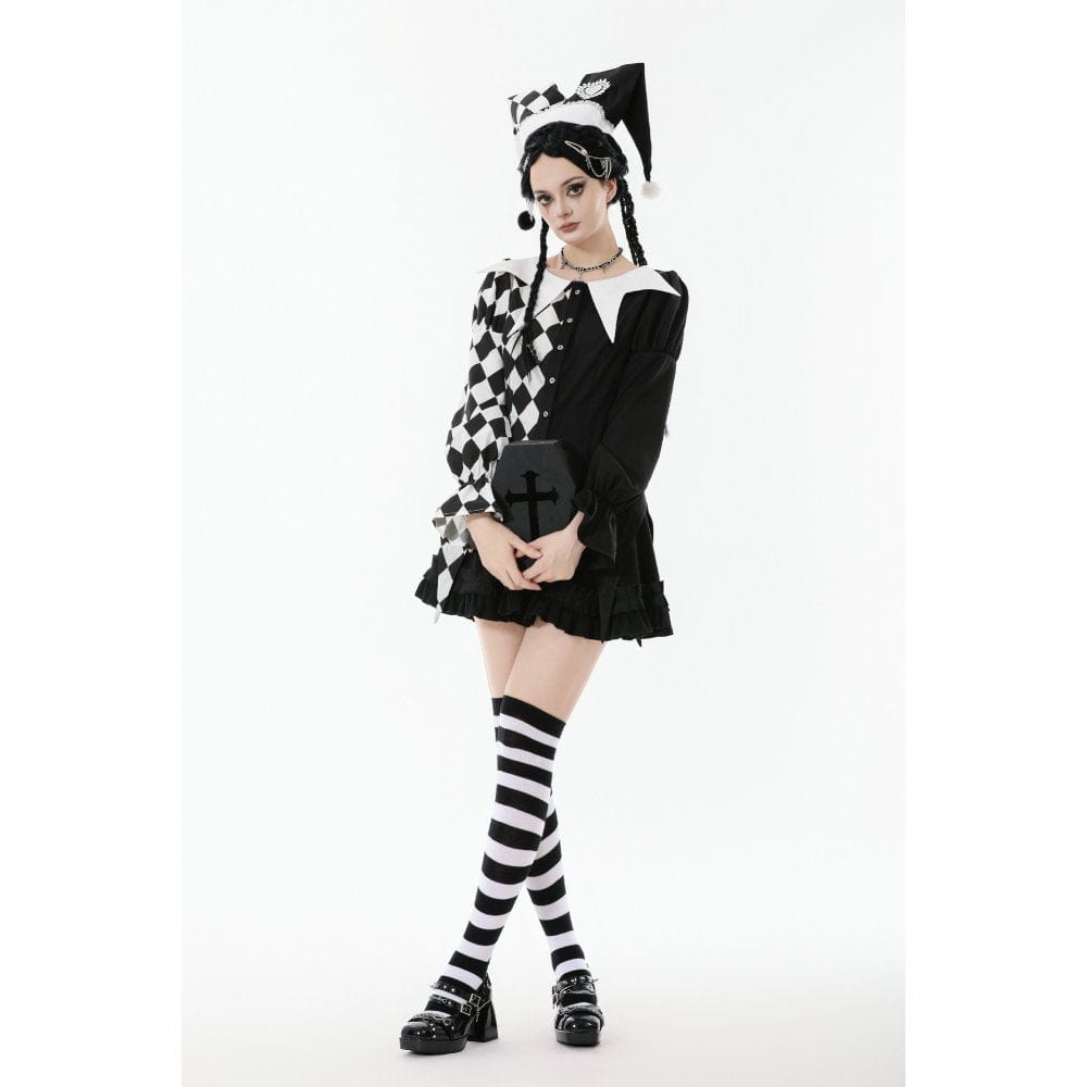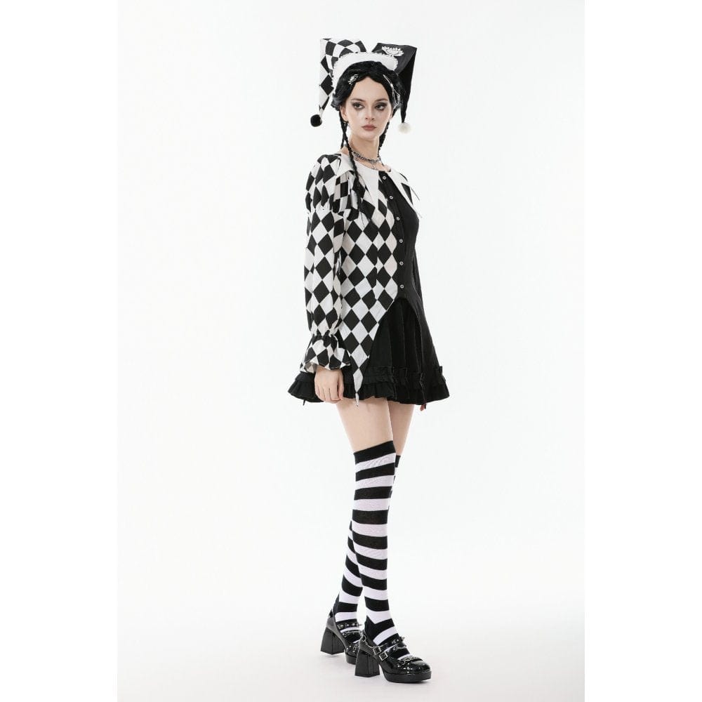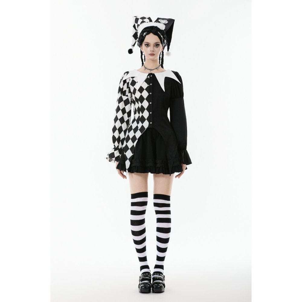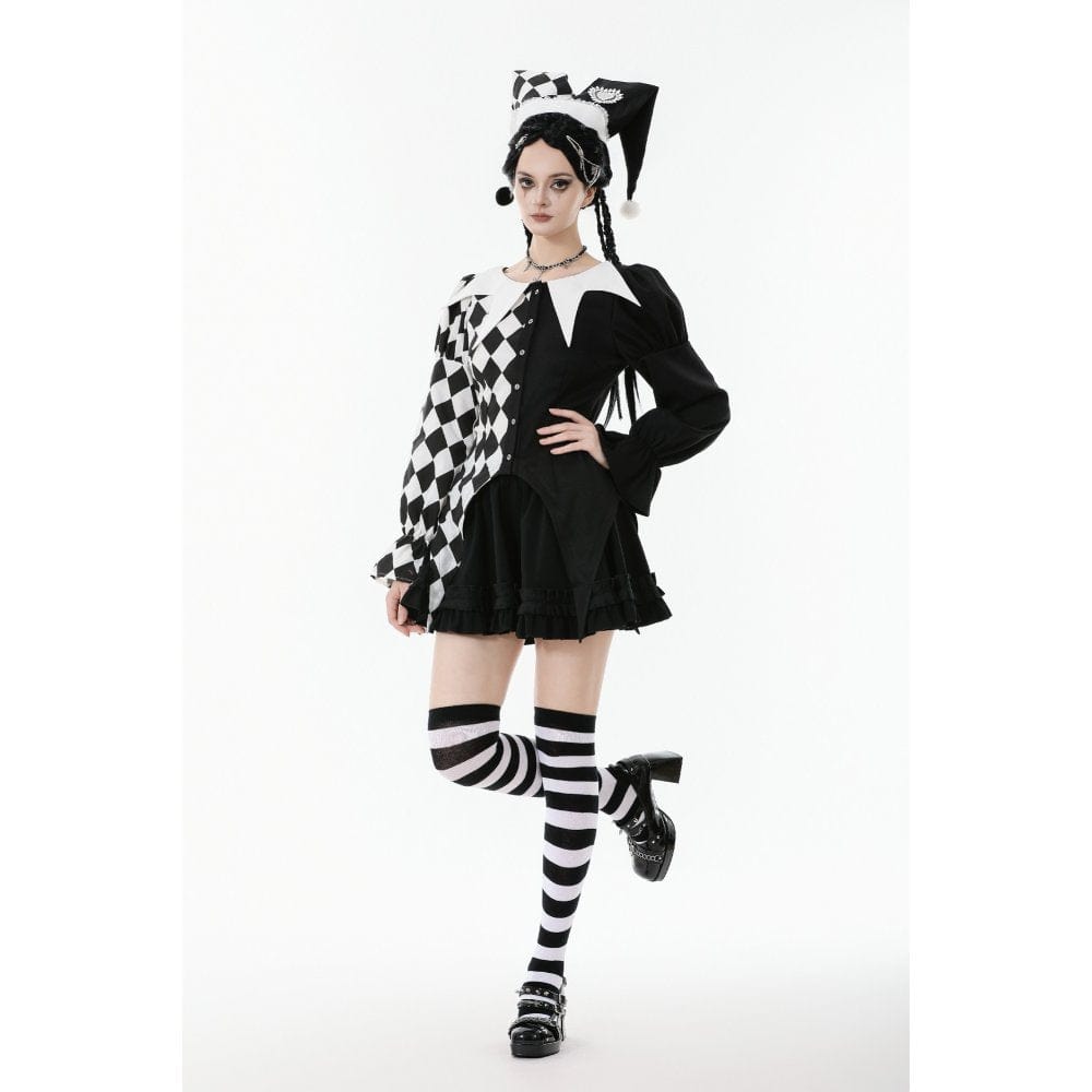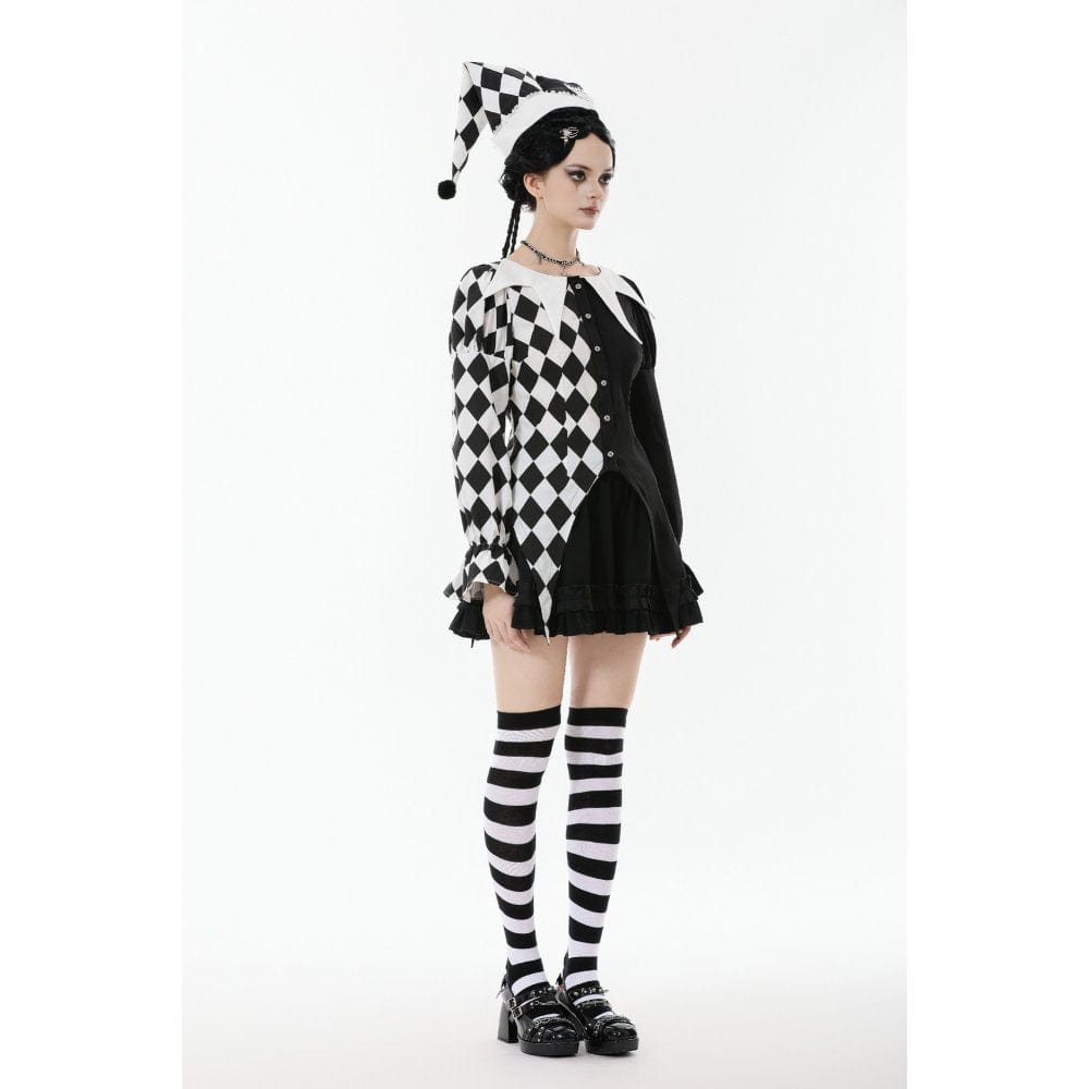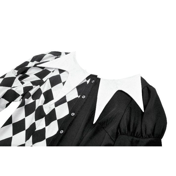 Women's Gothic Diamond Pattern Contrast Color Long Sleeved Shirt