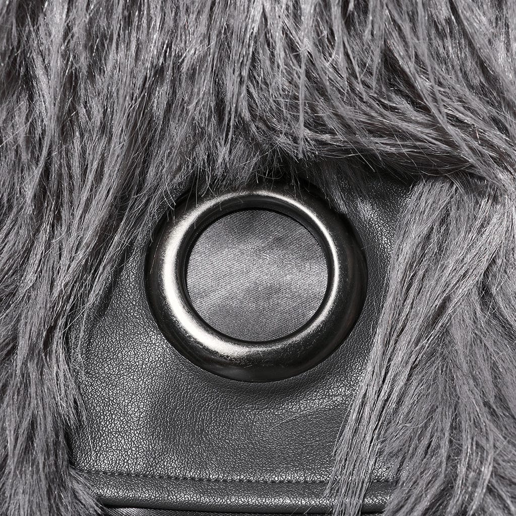 Women's Gothic Faux Fur Splice Faux Leather Coat Grey