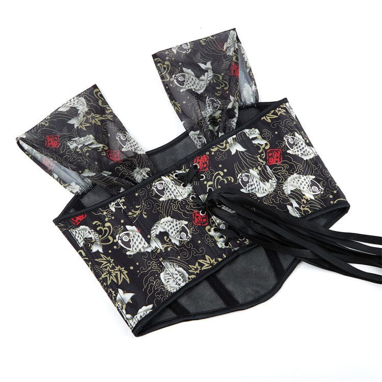 Women's Gothic Fish Pattern Steel Boned Overbust Corset