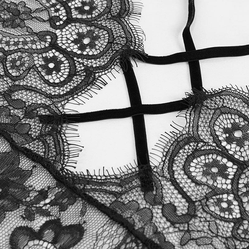 Women's Gothic Flare Sleeved Backless Sheer Sexy Nightgown