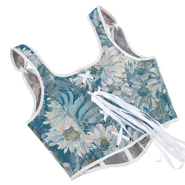 Women's Gothic Floral Printed Lace-up Overbust Corset