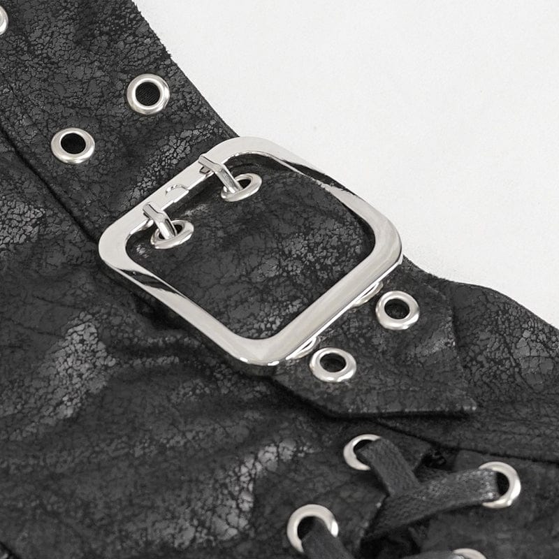 Women's Gothic Irregular Mesh Splice Buckle Skirt Black