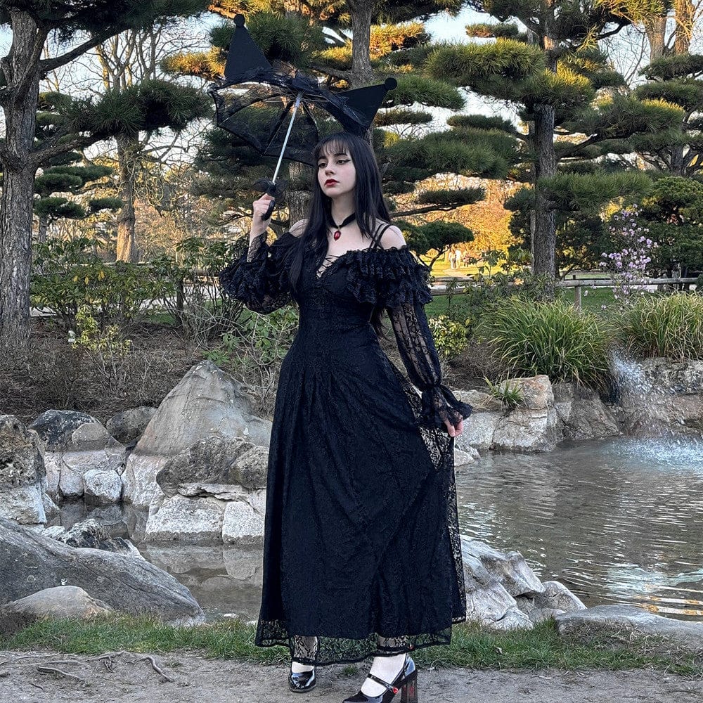 Women's Gothic Off-the-Shoulder Ruffled Lace Splice Prom Dress
