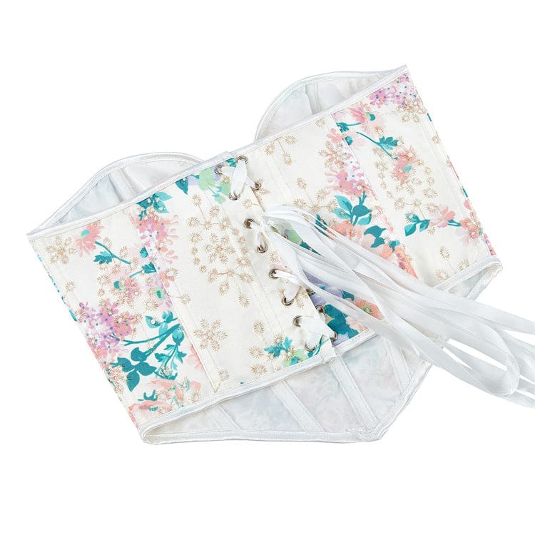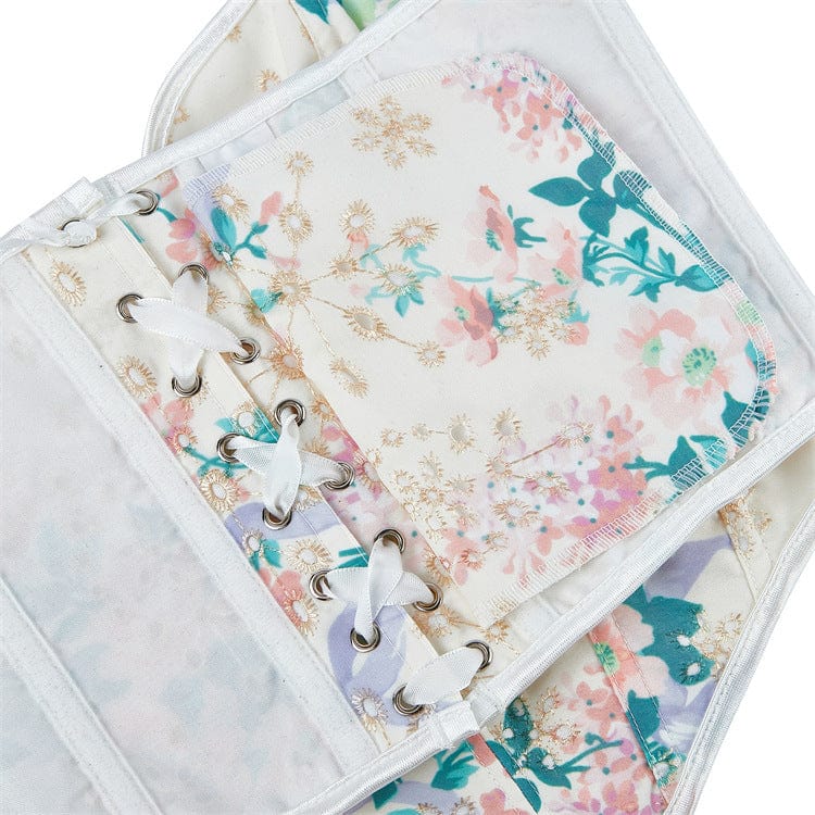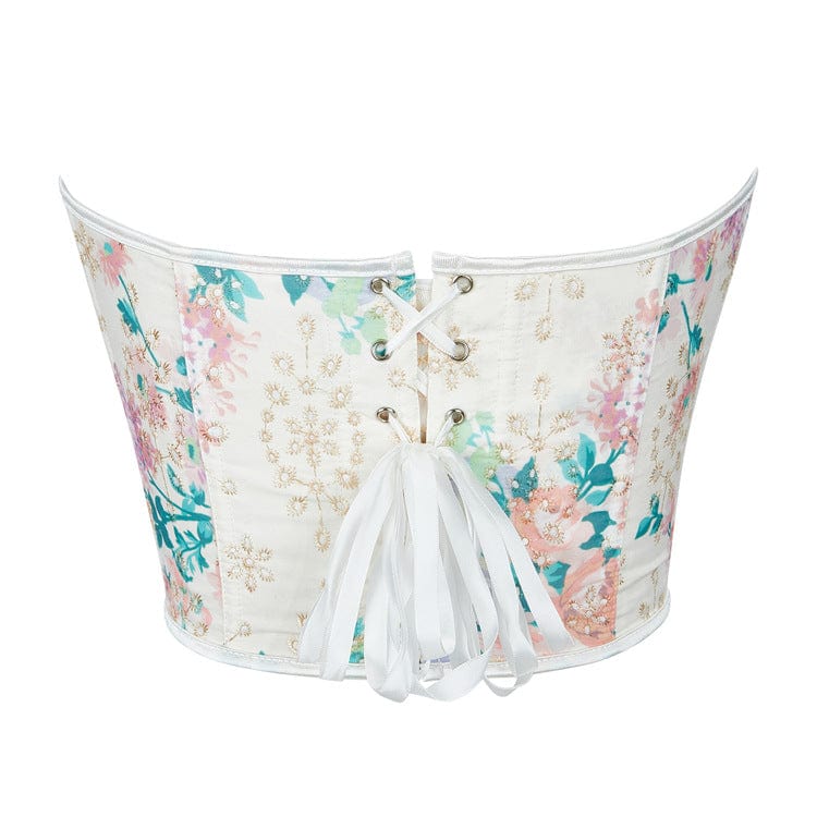 Women's Gothic Plunging Floral Printed Overbust Corset