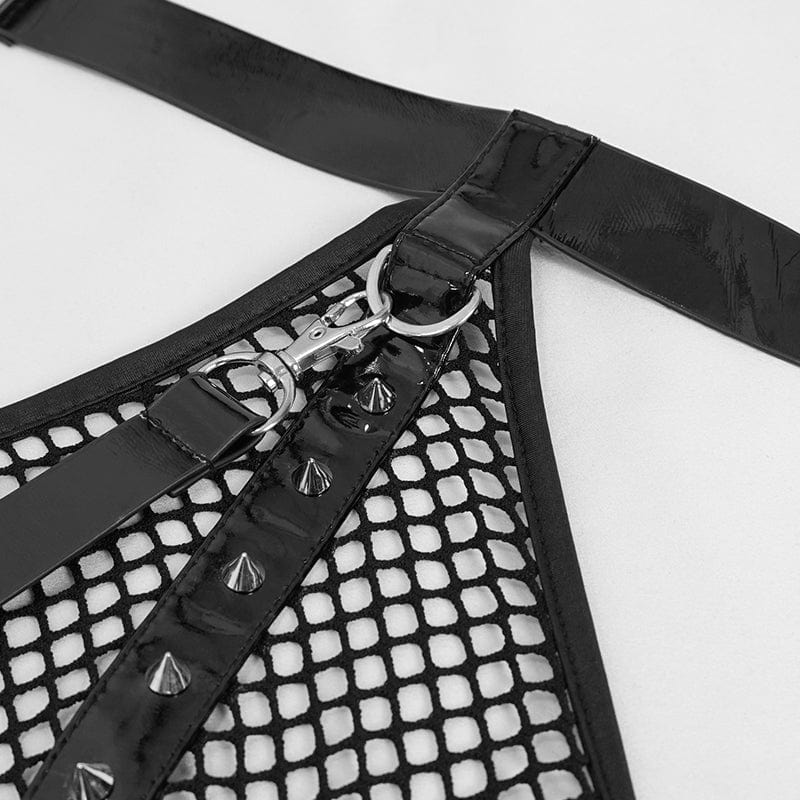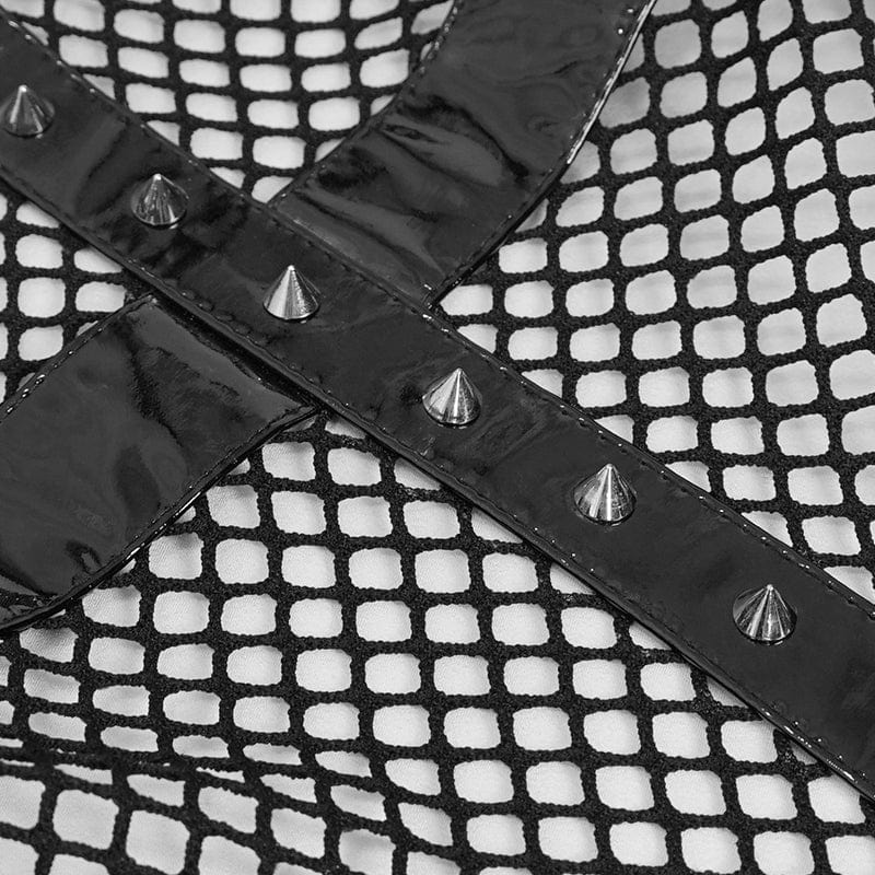Women's Gothic Sexy Mesh Bodysuit with Leash
