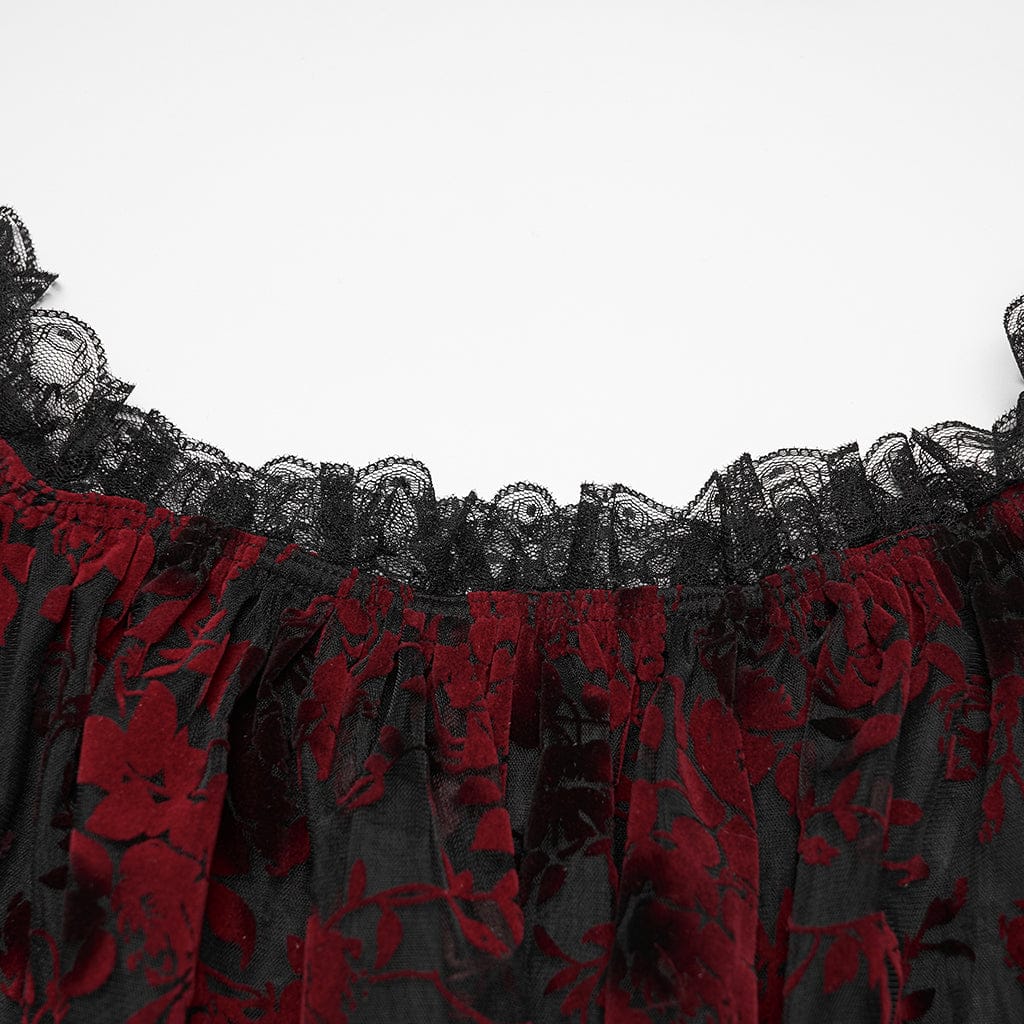 Women's Plus Size Gothic Off Shoulder Ruffles Sheer Shirt Black-Red