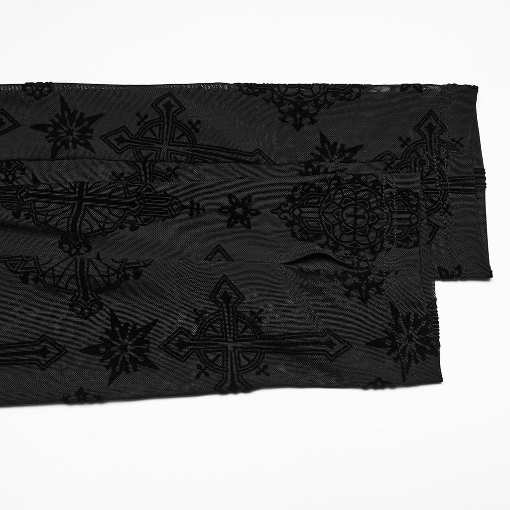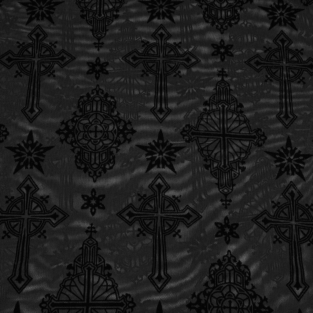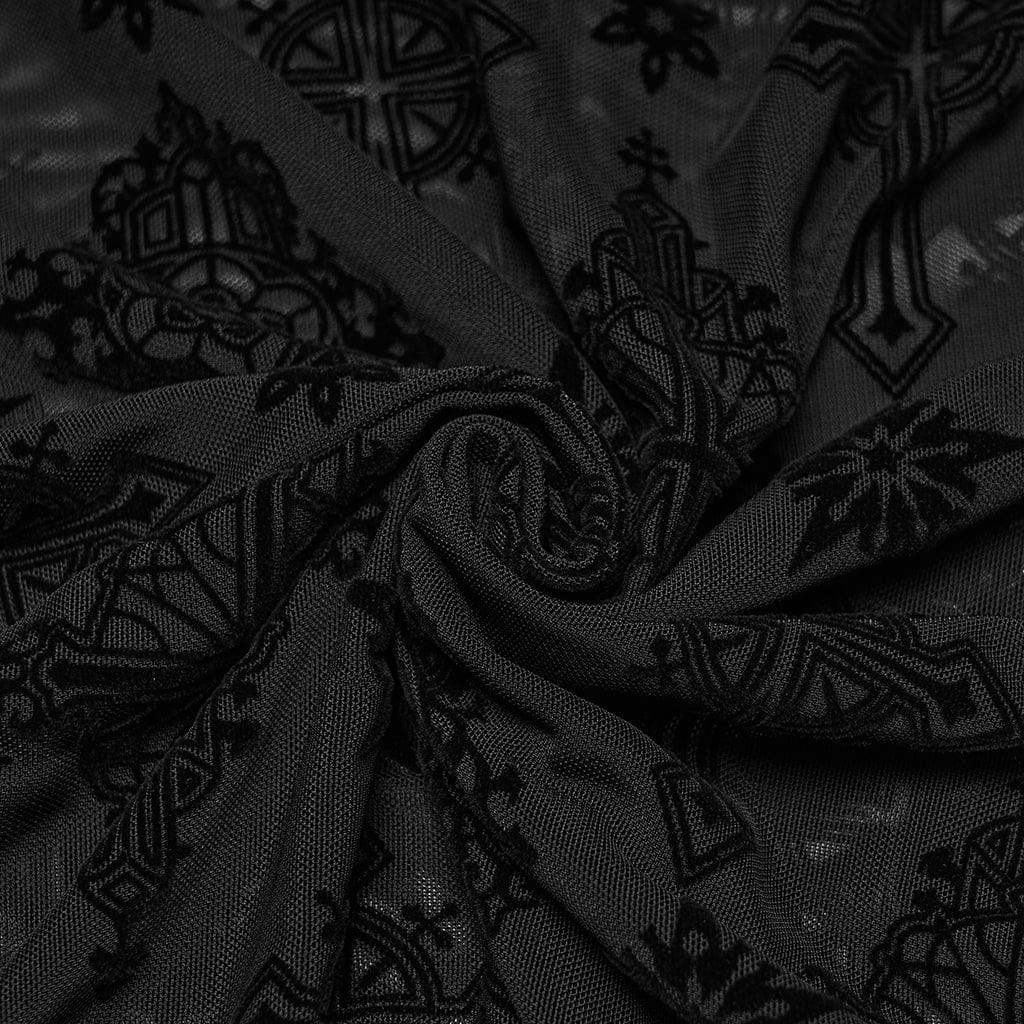 Whether you're pairing it with jeans for a casual look, or layering it under a jacket for a more polished outfit, the Women's Gothic Star Cross Flocking Mesh T-shirt is a must-have addition to any gothic wardrobe. Available in classic black, this t-shirt is versatile, stylish, and perfect for expressing your bold, alternative fashion sense.