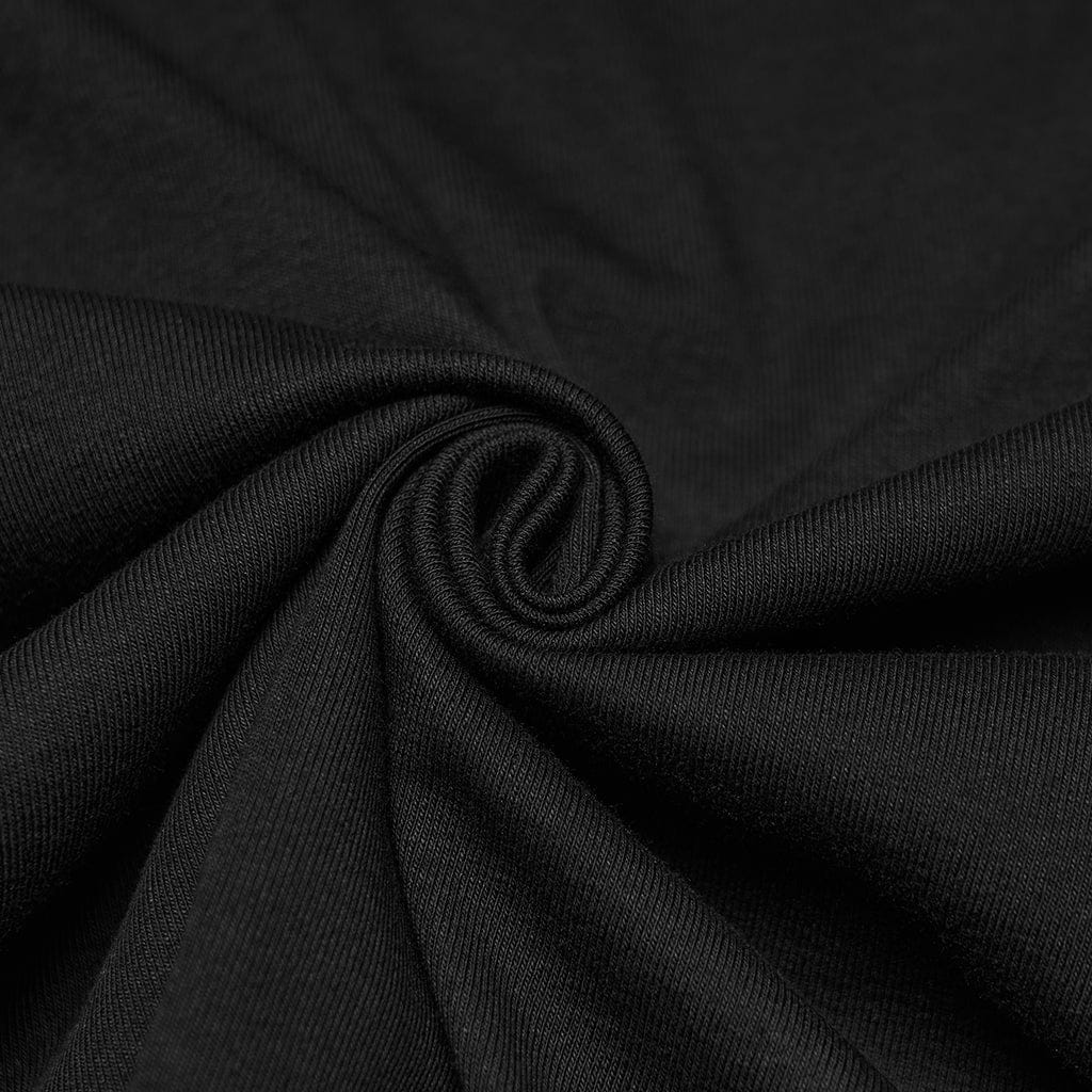 This punk shirt has gradient moon print on the front and irregular hem. Faux leather straps design on the front. Slim fitted silhouette and good elastic fabric.