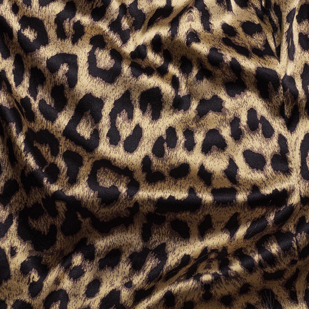 The leopard print lining is a standout detail, providing an unexpected pop of pattern that adds a touch of playful rebellion. This eye-catching lining enhances the coat's overall design, creating a striking contrast with the exterior plush fabric.