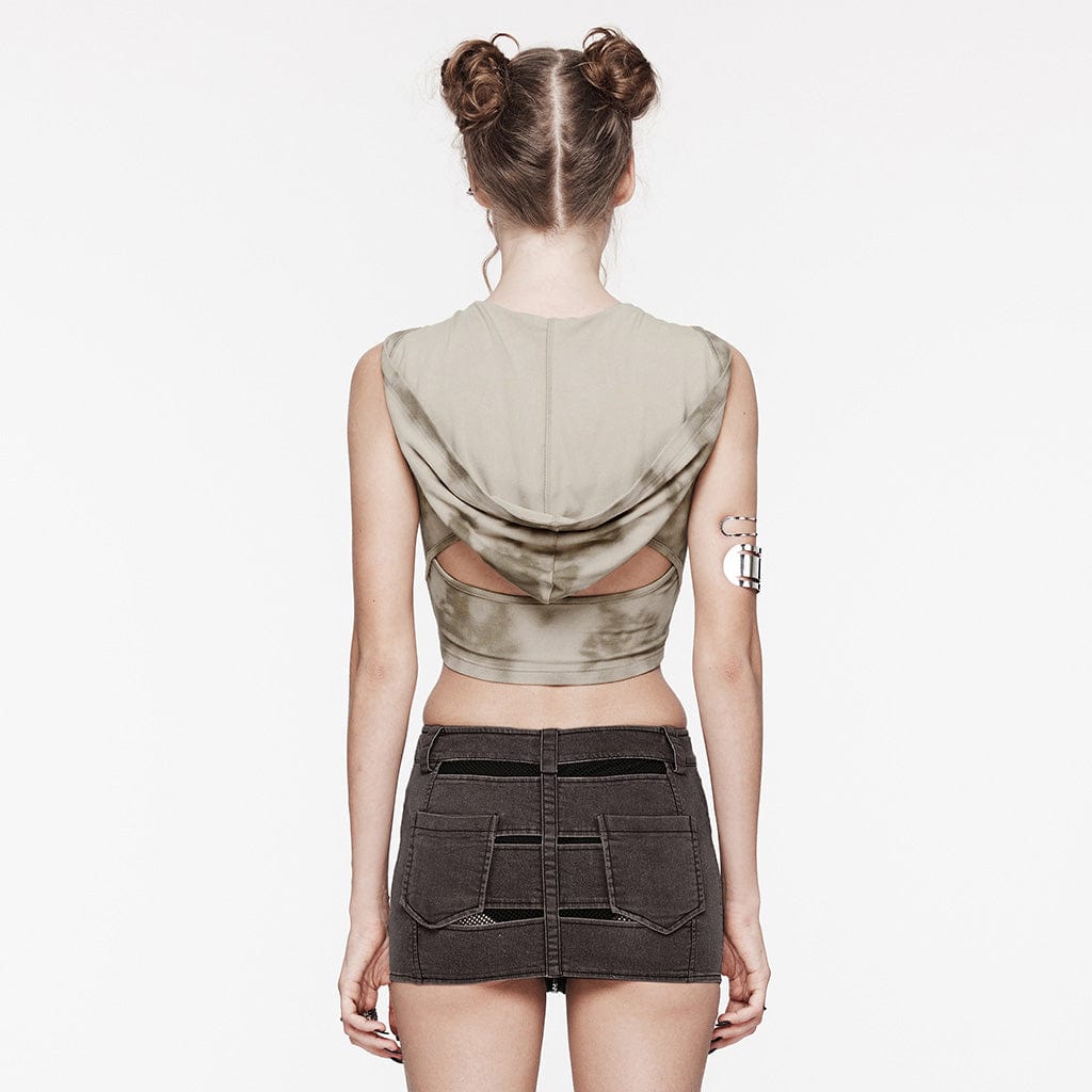 Women's Punk Cutout Crossed Tie-dyed Tank Top with Hood