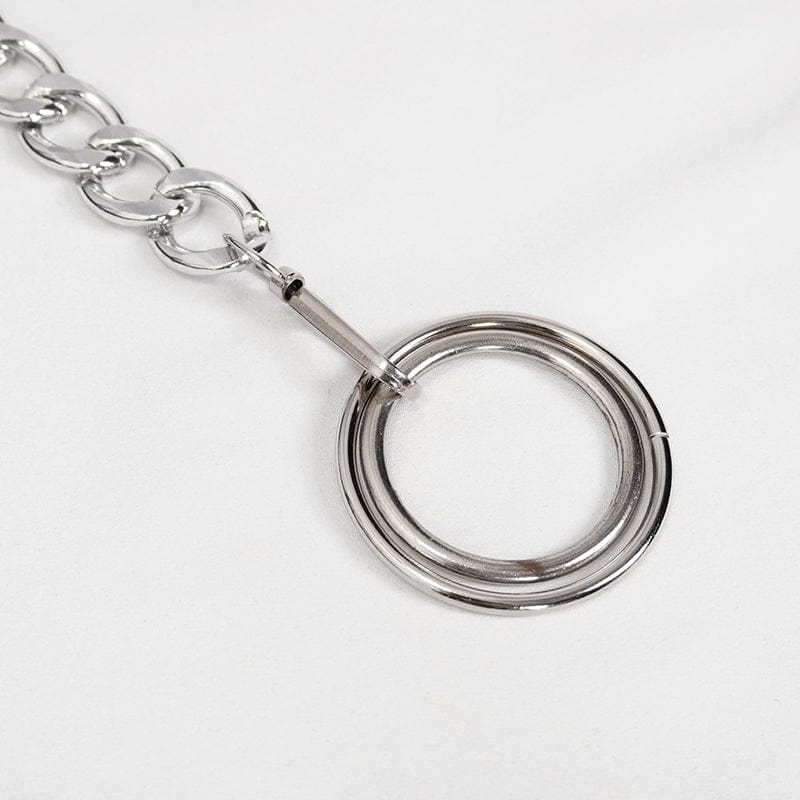 Women's Punk Faux Leather Ankle Banded Pants With Metal Chain