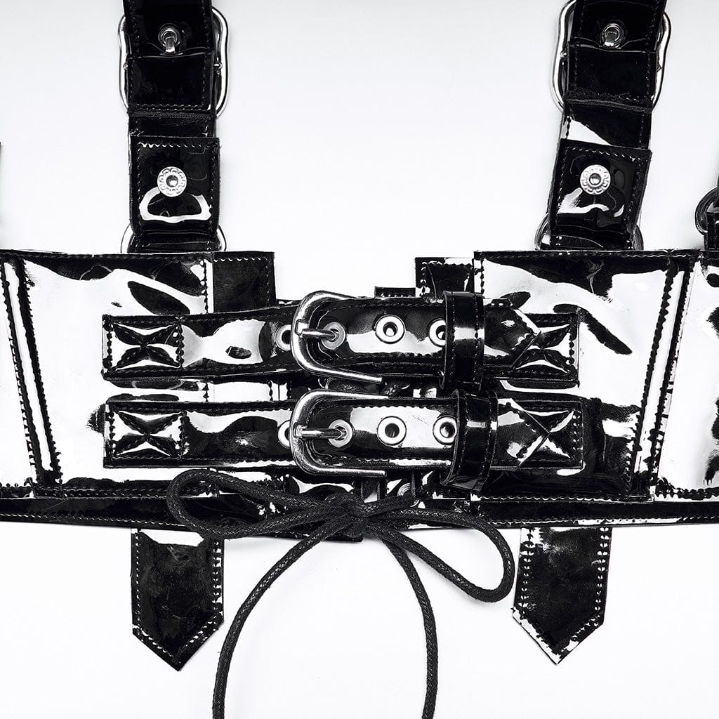 Women's Punk Lacing-up Faux Leather Wide Belt with Shoulder Straps