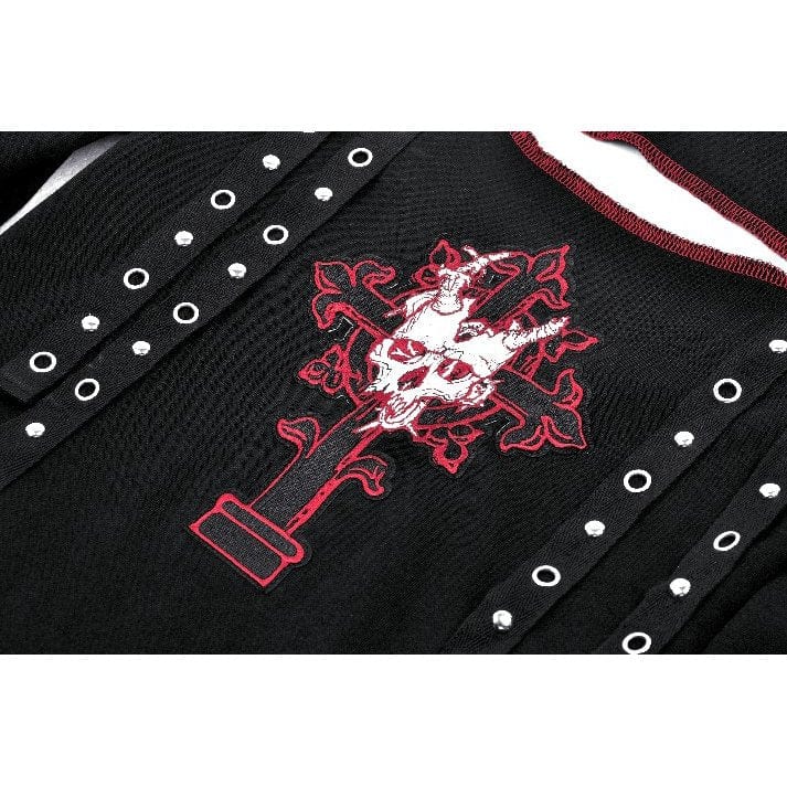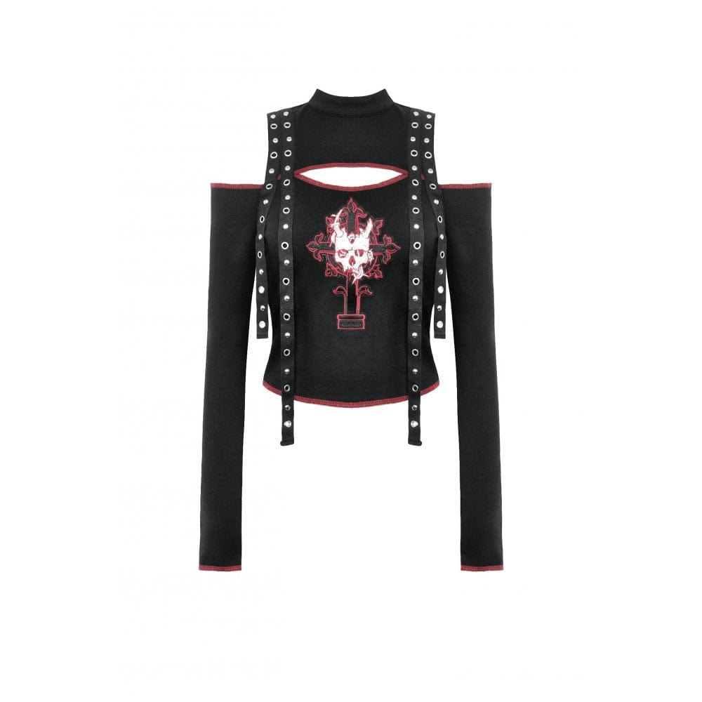 Women's Punk Off-the-Shoulder Eyelet Strap Crop Top