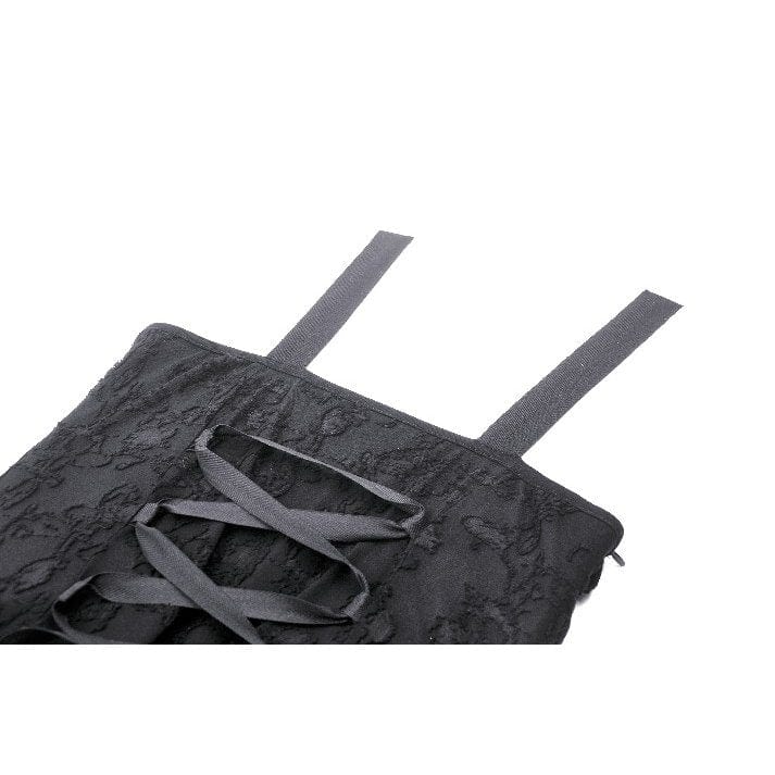 The shoulder straps are adorned with eyelets and metal rings, further enhancing the punk aesthetic and adding a touch of toughness to the dress. These metal accents catch the light and add a subtle shimmer, making them a focal point of the dress's design.