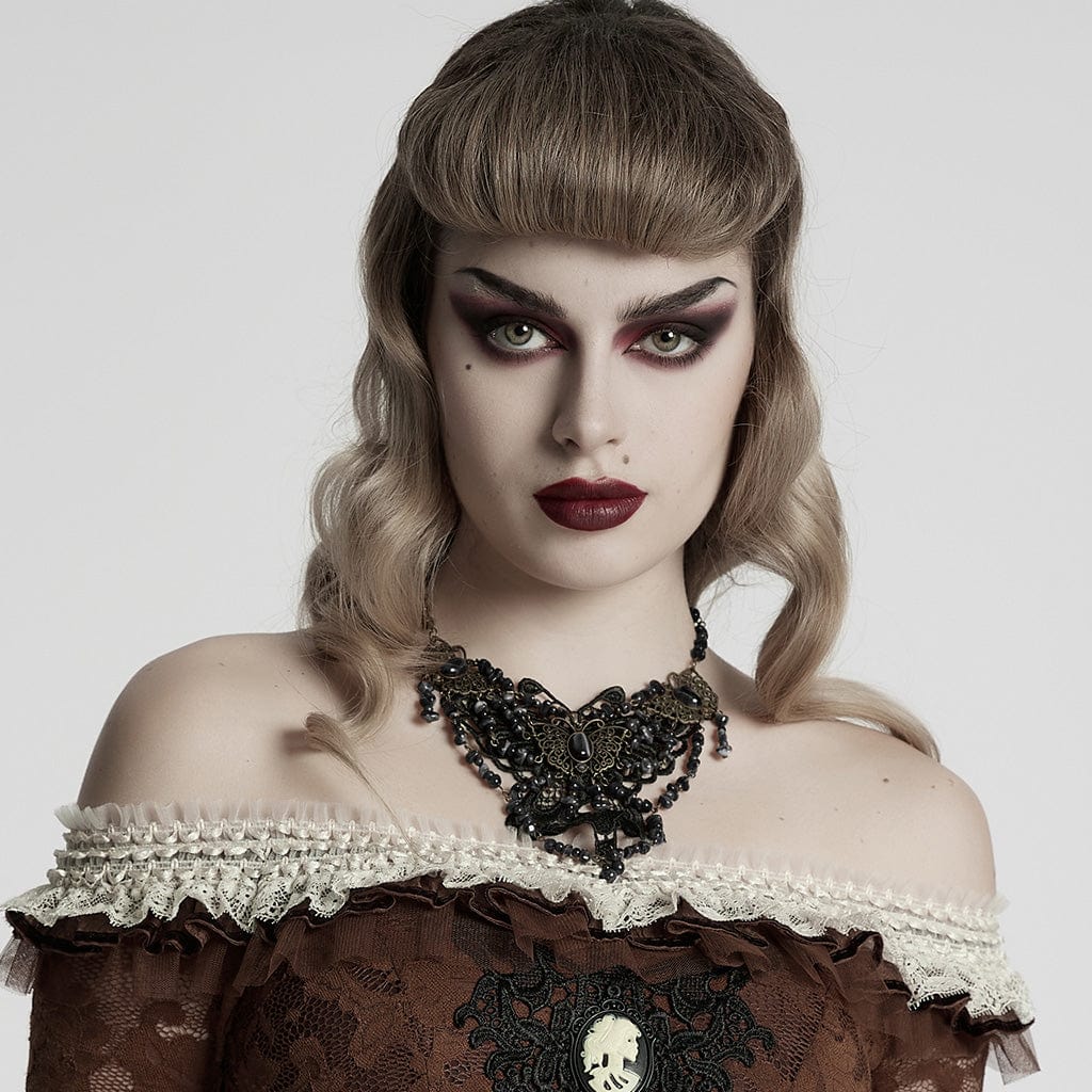 Women's Steampunk Irregular Beaded Butterfly Necklace Black