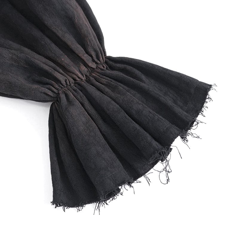 The stand collar of the shirt adds a touch of sophistication and Victorian flair, enhancing the overall aesthetic with its structured silhouette. Puff sleeves with flared cuffs create a dramatic and romantic look, adding a sense of whimsy and intrigue to your outfit.